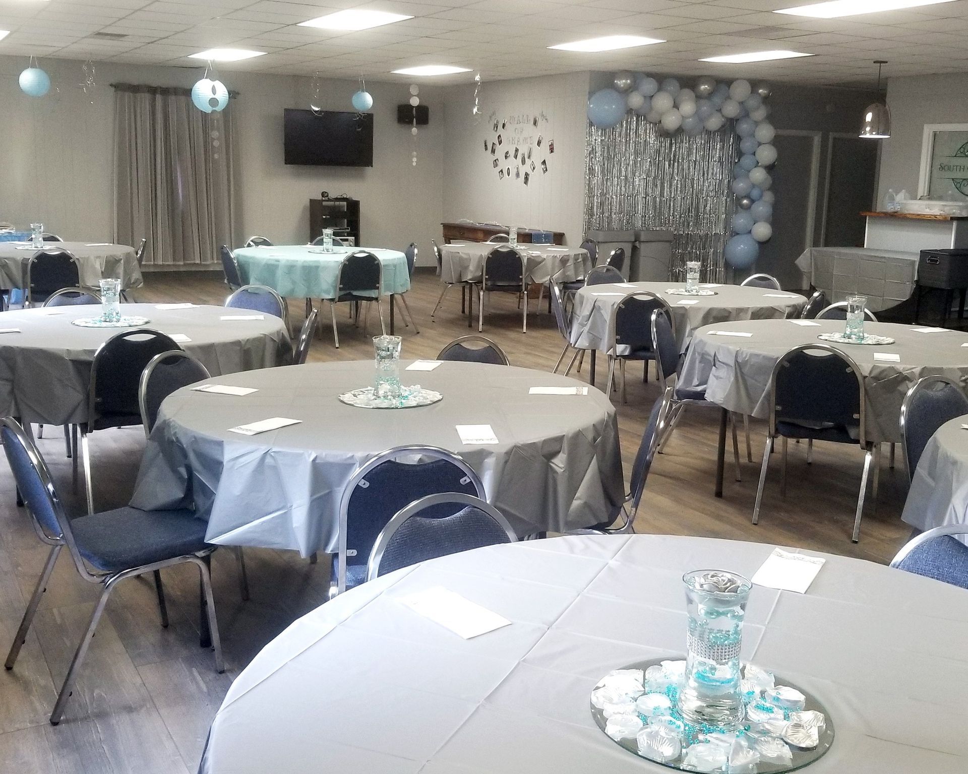 South on Whiskey offers a great value with many amenities. Tables and chairs, a food serving area and a custom beverage bar are included in the rental fee. Also included is a caterer's kitchenette complete with refrigerator, counter prep space and a large 3 section sink. The venue is presentation ready with a sound system, HDMI connection, TV and Wi-Fi availability.